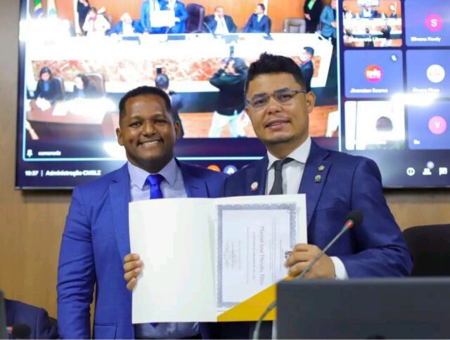 Ocorreu nesta quarta-feira (26), no plenário Simão Estácio da Silveira, a cerimônia de posse do vereador Manoel José Mendes Filho (Avante). Ele assumiu a vaga no lugar do vereador Beto Castro (Avante), que se ausentou para tratar de assuntos particulares por até 120 dias.