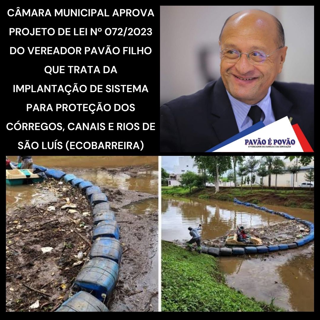 A Câmara Municipal de São Luís aprovou o Projeto de Lei nº 072/2023, de autoria do Vereador Prof. Pavão Filho, que trata sobre a implantação de sistema de ecobarreira na rede hidrográfica de São Luís para contenção de resíduos sólidos nos córregos, canais e rios, além da instalação de cerca de proteção nas margens dos esgotos a céu aberto.