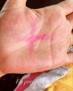 Um X* na palma das mãos de uma mulher significa um pedido de socorro.