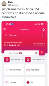 Às 8h, o termo “Bradesco” estava nos trending topics da rede social X (antigo Twitter). “Galera, quem tem conta no Bradesco dê uma olhada aí. Muita gente reclamando que dinheiro sumiu, conta negativa etc.”, postou um usuário.