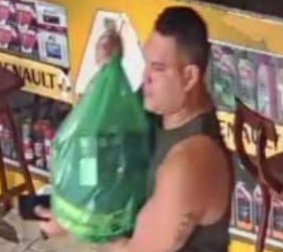 Uma sequência de prints das filmagens mostra o golpista (de camiseta escura e bermuda) solicitando as autopeças que supostamente desejava comprar, para em seguida deixar o local com os produtos dentro de uma sacola plástica. Veja abaixo: