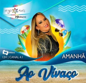 Não perca, é amanhã, Programa Algo Mais, a partir do meio-dia, ao vivaço, no canal 04, afiliada ao SBT. Algo Mais, 19 anos no ar!