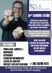 O Dr Sandro Ataíde especialista em próteses e implantes, e também com especialidade em lentes de contato dental atende exclusivamente no Edifício São Luís Multiempresarial 4 andar sala 414 no Renascença em frente ao Tropical Shopping.