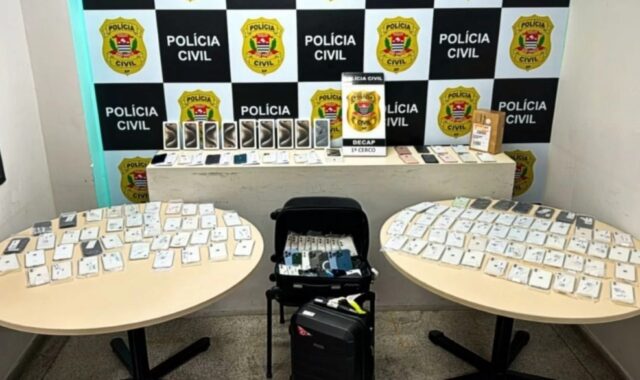 De acordo com o secretário da Segurança Pública, Guilherme Derrite (PL), os suspeitos participavam de um esquema de exportação de celulares.