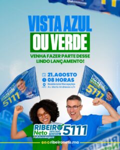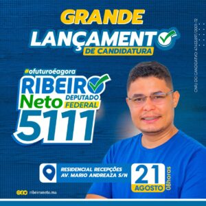 Só lembrando que a partir das 8:00 da manhã deste domingo(21), os portões do Residencial Recepções , na Avenida Mário Andreazza estarão abertos esperando os amigos e simpatizantes que resolveram abraçar a candidatura a deputado federal do jovem vereador de São Luís, Ribeiro Neto, que disputa com o número 5111.