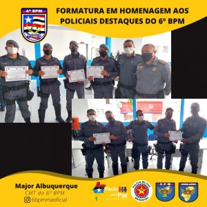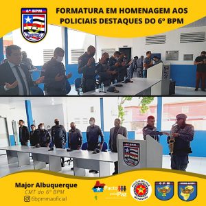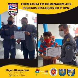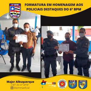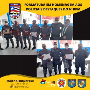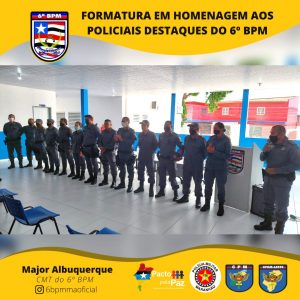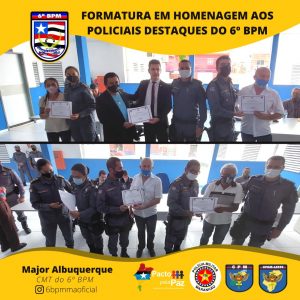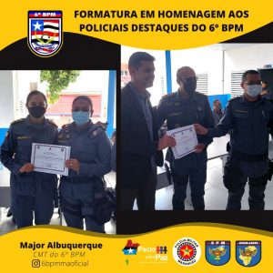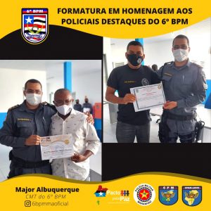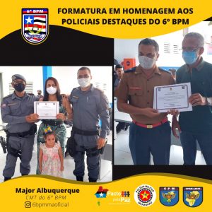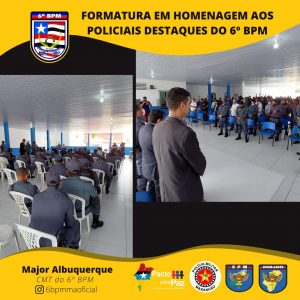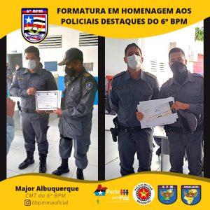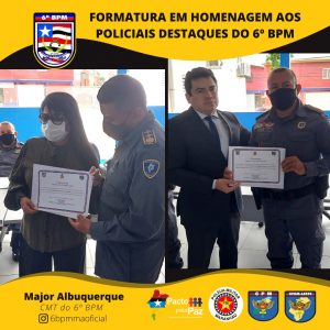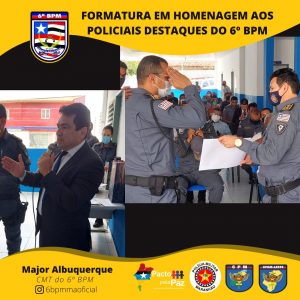 O Comandante da Unidade entregou o Certificado de “Amigos do 6º Batalhão” pra militares e civis que colaboram com o serviço dessa UPM e homenageou os policiais militares destaques, momento em que presenteou o policial que mais retirou arma de fogo de circulação. E, por fim, foi serviço um _coffee breack_ para todos que estavam presente.