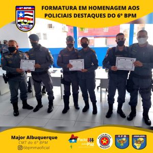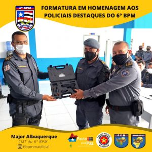 Na manhã desta quinta-feira (23/12), realizou-se uma solenidade no 6º Batalhão, na qual o Major Albuquerque, Comandante do 6º BPM, homenageou os policiais e as equipes que mais se destacaram no segundo semestre do ano de 2021 e o POLICIAL MILITAR que mais apreendeu arma de fogo foi AGRACIADO COM UMA ARMA DE FOGO.