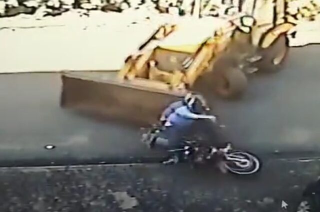 Nas imagens de uma câmera, Silva aparece de moto pela rua quando Magalhães o atinge com a retroescavedeira. A vítima bate contra um carro e, sem seguida, é atropelada. O funcionário passa com o veículo sobre o colega, que não consegue sair.