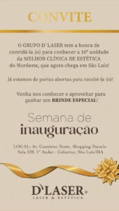 Agora em São Luís você pode contar com o mais novo espaço de beleza e estética se trata da Clínica *D’ Laser* que abriu às portas hoje, desde às 9h no 1° piso no Shopping Passeio Cohatrac com o *coquetel às 18h* e vários brindes.