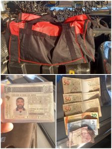 No local, foram encontrados documentos, dinheiro e uma bolsa de mão, onde estavam roupas.