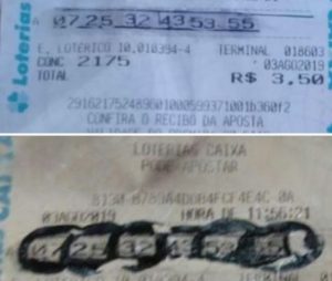 A fraude foi notada pela funcionária da lotérica. Segundo a polícia, o código de barras do bilhete apresentado pela cliente não era aceito pelo sistema.