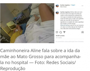 Em outro post, feito também na terça, Aline disse a mãe de 62 anos enfrentou o medo que tem de avião para ir até Mato Grosso e ajudar nos cuidados.