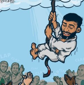 A publicação traz uma ilustração do lutador subindo ao céu sob aplausos.