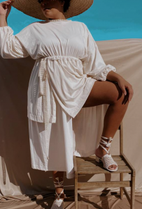 Vestido agênero da primeira coleção de roupas com acabamento antiviral lançada no Brasil. Quem estrela a campanha é a modelo Rita Carreira, já entrevistada pela coluna.