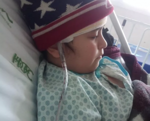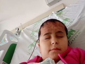 Depois de 12 dias, ela ainda não melhorou e precisou raspar o cabelo para drenar o líquido em sua cabeça, já que ela teve uma infecção grave.