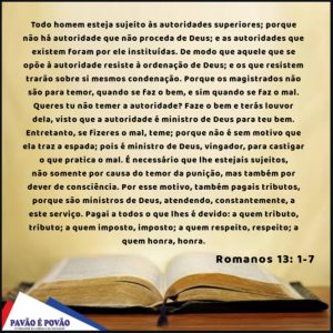 Todo homem esteja sujeito às autoridades superiores; porque não há autoridade que não proceda de Deus; e as autoridades que existem foram por ele instituídas.