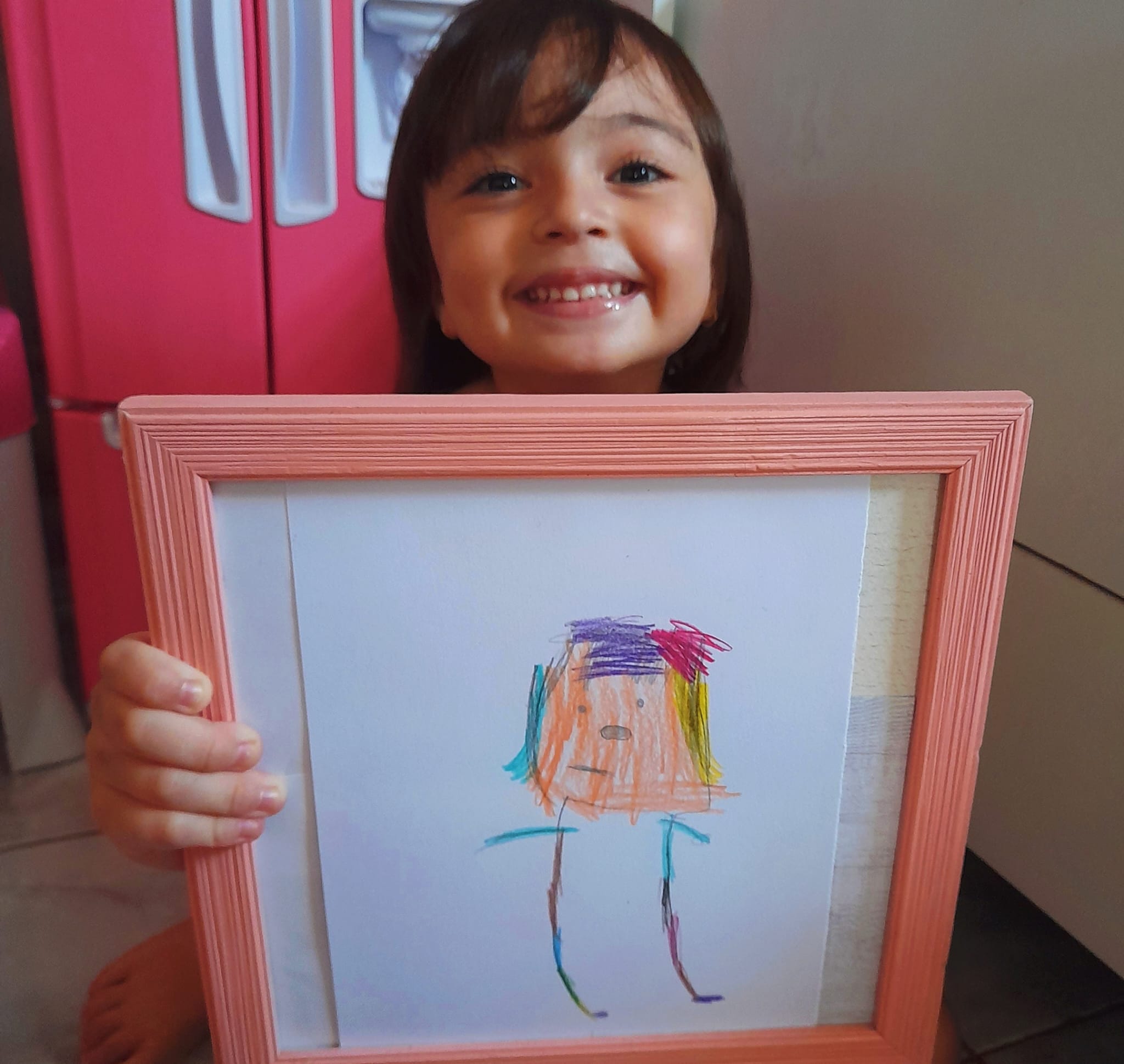 A menina ama colorir, tem uma coleção de xícaras de chá, a cada momento de interação com os brinquedos surge uma ideia abordada pela pequenina. Cada boneca sua tem nome e agora sua personagem para o concurso Tintintins também. Se tem uma coisa que ela gosta… é de imaginar!