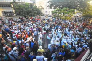 Já passava das 19: 30h desta quinta-feira(08), quando os andores com as imagens de Dão Luís Rei de França, Nossa Senhora da Conceição, São Sebastião e Santa Bárbara adentraram na Igreja do Desterro, no centro da capital maranhense, concluindo o percurso de mais uma edição da tradicional Procissão dos Orixás.