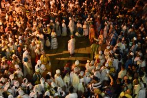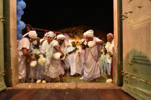 A cerimônia finaliza com uma salva de tambor na porta da igreja demonstrando o avanço sincrético entre as religiões.