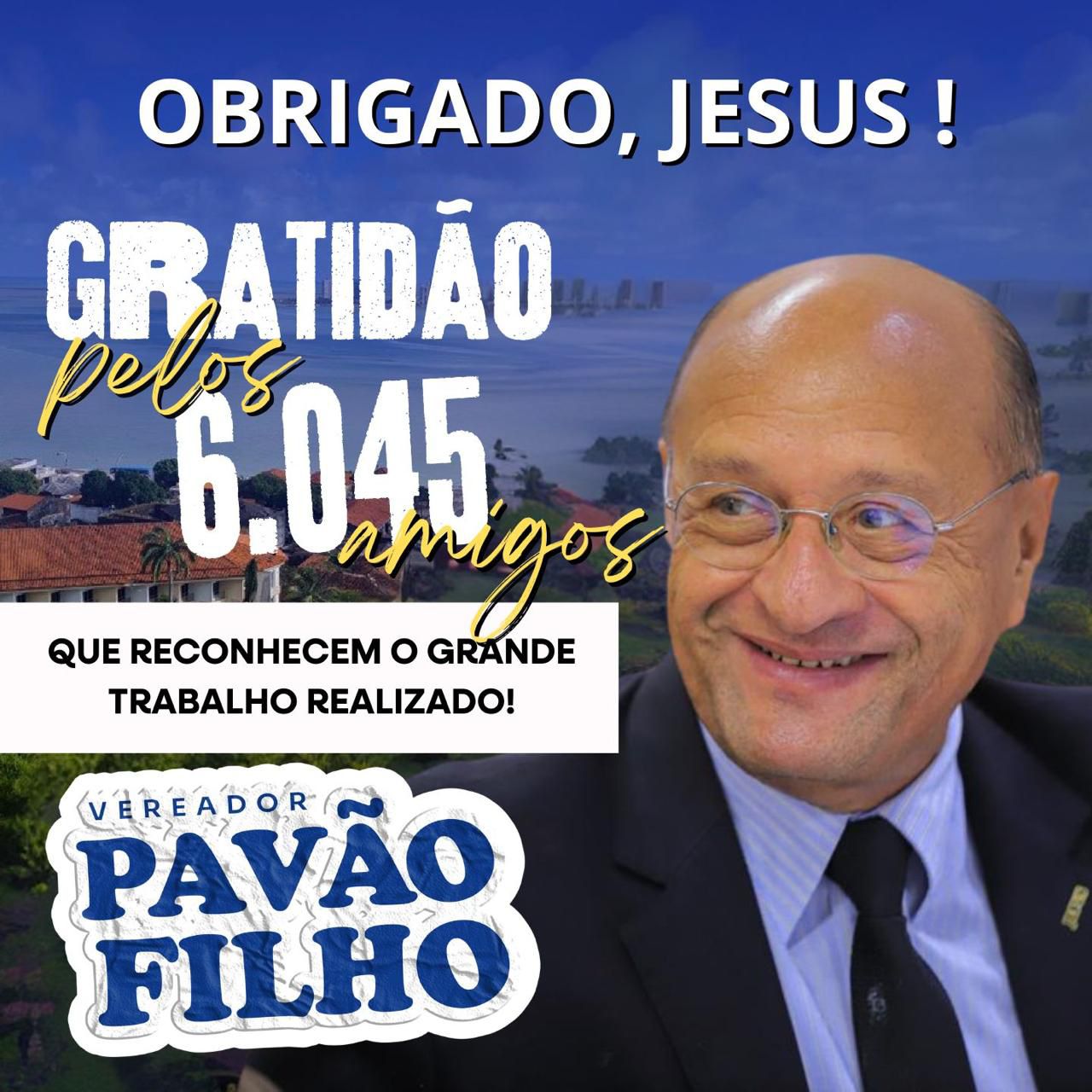 O vereador Pavão Filho agradece às pessoas que confiaram em seu trabalho e os mais de 6 mil votos que obteve na eleição do último domingo (6). Pavão Filho ficou com a primeira suplência dentro do PSB.