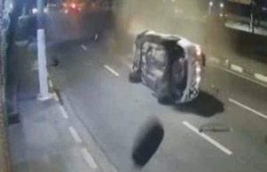 Um dos policiais que estavam no veículo morreu após ser arremessado para fora.