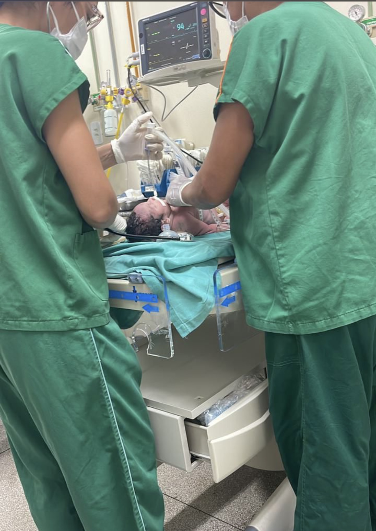 A agonia se prologou por aproximadamente 20h, quando os médicos deciciram estourar manualmente a bolsa, mas acredito que como passou do horário, ele não chorou ao nascer, constatando-se que houve a broncoaspiração de fezes, foi necessário brocoaspirar e entubá-lo, levando-o para a UTI”, narrou o pai.