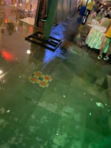 Os organizadores não se prepararam pra estação do momento, e muitas pessoas por já terem pago caro pra participar no “Espaço Privilégio” tiveram que dançar na chuva.