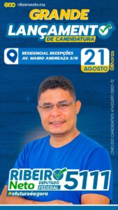 O Residencial Recepções , na Avenida Mário Andressa foi o local escolhido para grande festa de lançamento da candidatura a deputado federal do vereador Ribeiro Neto (Patriotas), que acontece no domingo (21), a partir das 8:00hs.