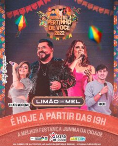 Com a apresentação dos cantores maranhense, Thaís Moreno e Rick, a festança de Pai Francisco e Catirina terá a banda pernambucana Limão com Mel como atração principal. Com apoio da Prefeitura de São Luís e o Governo do Estado, o Pertinho de Você foi idealizado pelo vereador Astro de Ogum, que tem o próprio edil como responsável pelo evento.