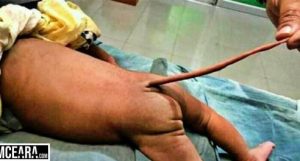 Um bebê colombiano nasce com cauda e causa perplexidade no mundo.