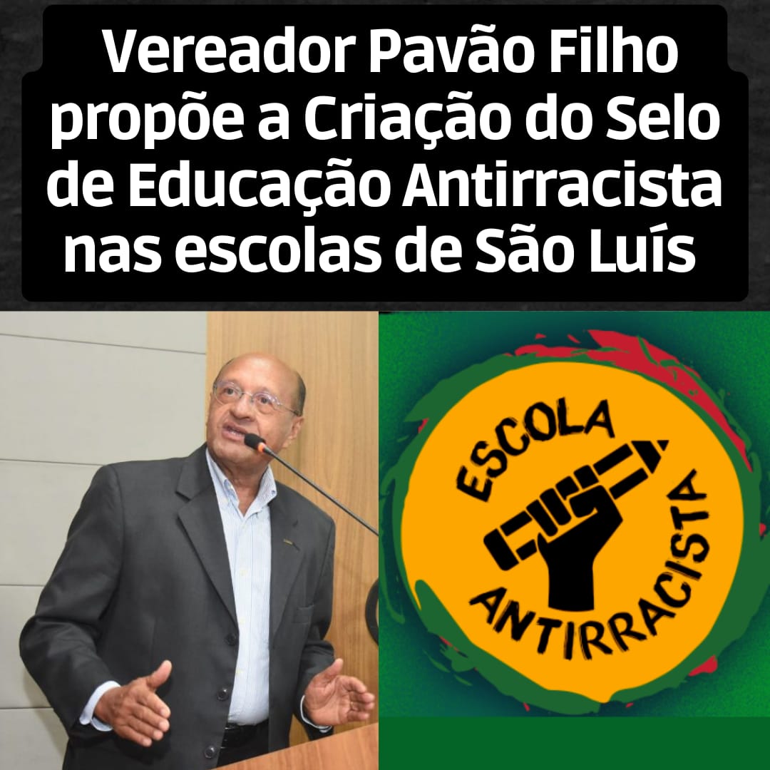 O Vereador Profº Pavão Filho apresentou Projeto de Lei nº 073 / 2023, que Cria o Selo de Educação Antirracista nas escolas do Município de São Luís, objetivando o combate ao racismo e qualquer expressão de preconceito nas unidades escolares, visando a implementação de políticas, programas e projetos que promovam a igualdade racial, criando um ambiente escolar saudável, respeitador e acolhedor para os estudantes .