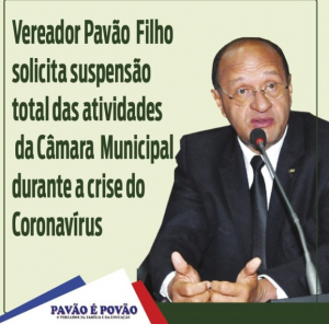 O vereador Pavão Filho ressalta a importância de todos os cidadãos permanecerem em casa no regime de isolamento social, por uma questão de segurança e de saúde pública para que possamos juntos e com a bênção de Deus vencer os vírus H1N1 e Coronavirus – Covid 19, devendo apenas permanecer ativo os serviços essenciais como saúde, segurança, trânsito e transporte.