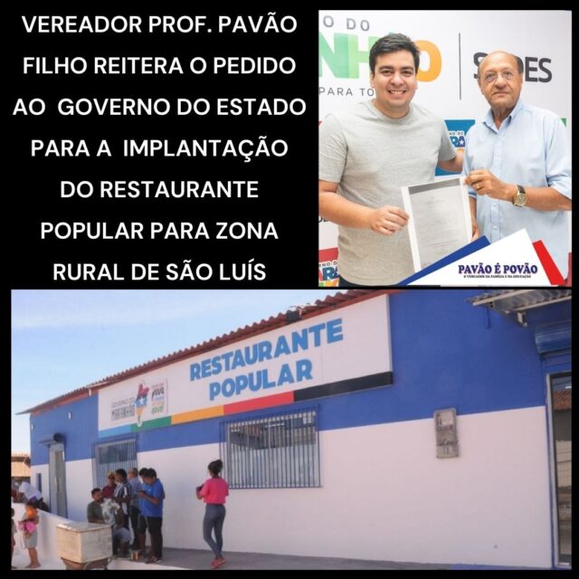 O Vereador Profº Pavão Filho solicitou ao Governo do Estado, por meio de indicação nº 086/2023, a implantação de um RESTAURANTE POPULAR para Zona Rural.