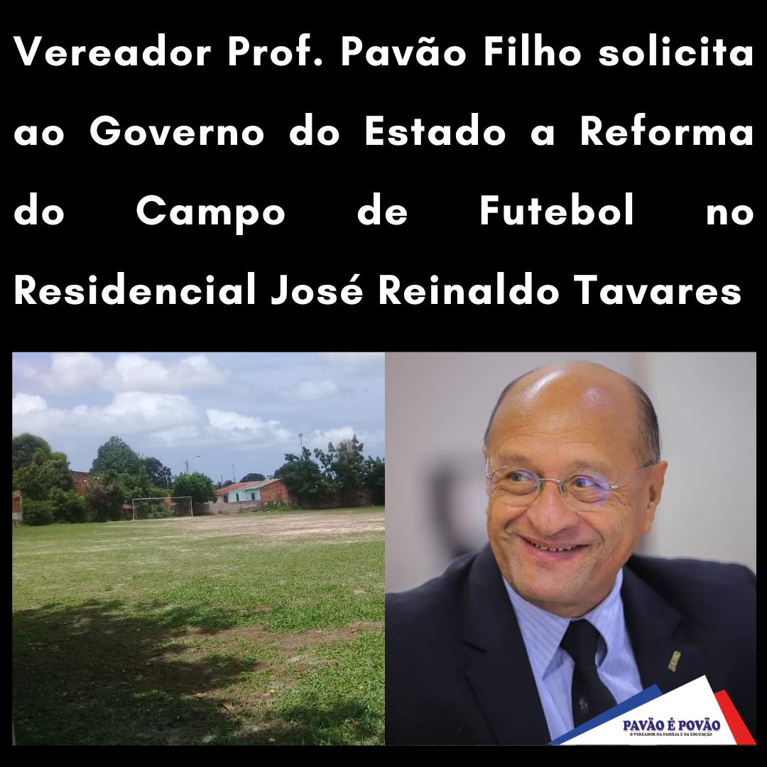 A Câmara Municipal aprovou a Indicação nº 342/2023, de autoria do Vereador Prof. Pavão Filho, no qual solicitou ao Governo do Estado a reforma do campo de futebol conhecido como Mangueirão, bem como a construção de banheiros, vestuários e arquibancadas, localizado no Residencial José Reinaldo Tavares. A presente indicação foi encaminhada à Secretaria de Esporte e Lazer (SEDEL) e Agência Executiva Metropolitana (AGEM).