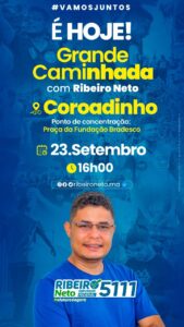 Ao lado de amigos, simpatizantes, apoiadores e correligionários, entre eles o professor Joilson Castro, candidato a deputado estadual 51890, o vereador de São Luís Ribeiro Neto, candidato a deputado federal com o número 5111- vai realizar logo mais a tarde uma grande caminhada no Coroadinho.