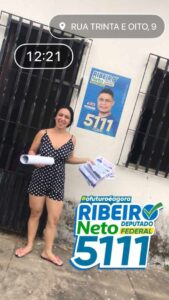 Mesmo faltando pouco mais de uma semana para a maior festa da democracia, dia após dia, ininterruptamente, tem sido intenso o trabalho realizado pelo grupo de Ribeiro Neto, vereador de São Luís que é candidato a deputado federal com o número 5111, com destaque para jovem Mariana Mendes, responsável pela distribuição do material de propaganda.