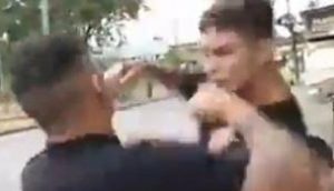 Um deles foi o jovem agredido. “Ele começou a passar a versão dele e as coisas começaram a ficar pior quando a gente chegou e falou que ele justificou a morte das pessoas com a apreensão de 400 fuzis sendo que são mais de 1080 pessoas mortas no estado por violência policial”, contou.