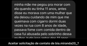 Além disso, Bia disse que nunca se deu bem com a mãe, que a rede social é uma máscara e a acusou de agressões físicas, verbais e psicológicas.