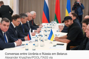 “As delegações ucranianas e russas realizaram a primeira rodada de negociações. Seu objetivo principal era discutir o cessar-fogo e o fim das ações de combate no território da Ucrânia”, disse Podolyak.