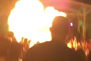 Pois fogos de artifício acabaram explodindo em solo, atingindo populares presentes no evento.