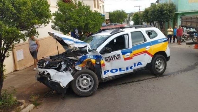 Uma viatura da Polícia Militar bateu em um caminhão enquanto perseguia um motociclista em Brasília de Minas, nesta quarta-feira (7)