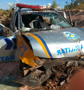 Uma viatura da Polícia Militar do Tocantins saiu da pista e capotou várias vezes na tarde de quarta-feira 17/07 na rodovia TO-130, nas proximidades do Distrito de Bielândia, no norte do Estado.