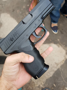 O elemento portava um simulacro da Pistola .40 na atividade criminosa.